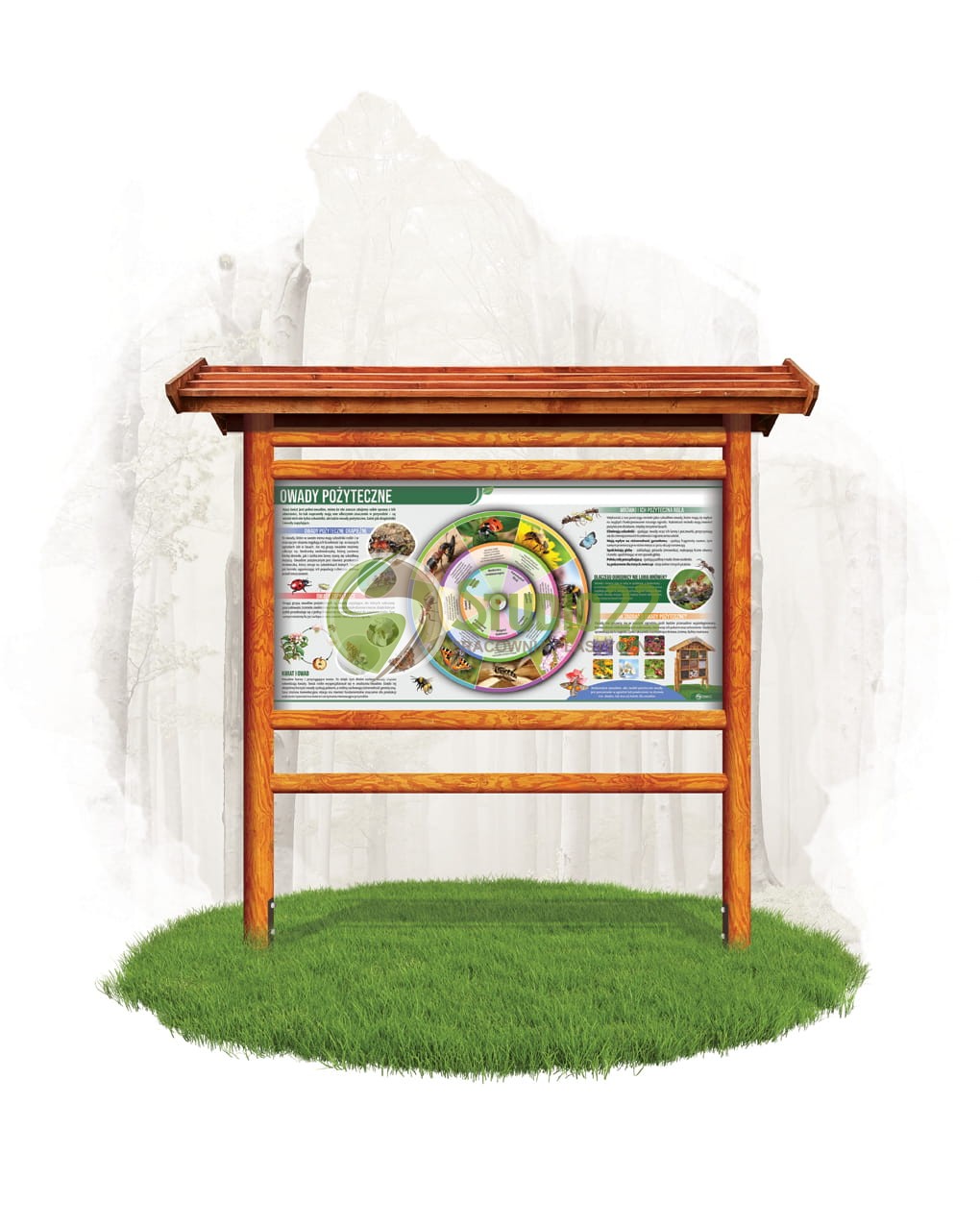 Koło wiedzy na tablicy - "Owady pożyteczne" to przyrząd edukacyjny, w którym zabawa polega na wprawieniu w ruch kół znajdujących się na tablicy i dopasowaniu do siebie wiadomości dotyczących owadów pożytecznych dla człowieka i środowiska.