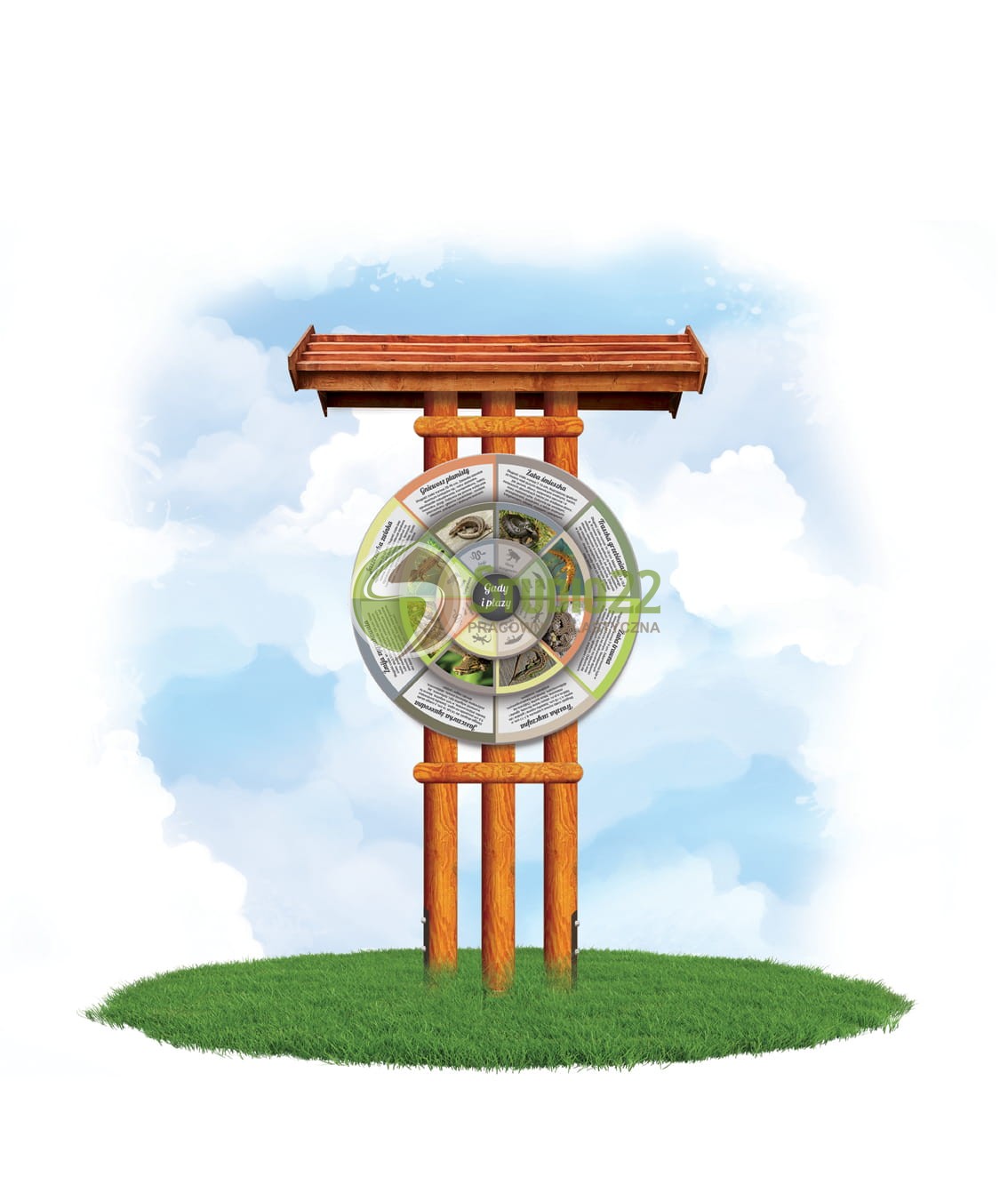 Koło wiedzy zadaszone na 3 palach "Gady i płazy"